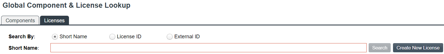 1. Open the Global Component & License Lookup tab, using the instructions in Accessing the Global Component & License Lookup Feature.